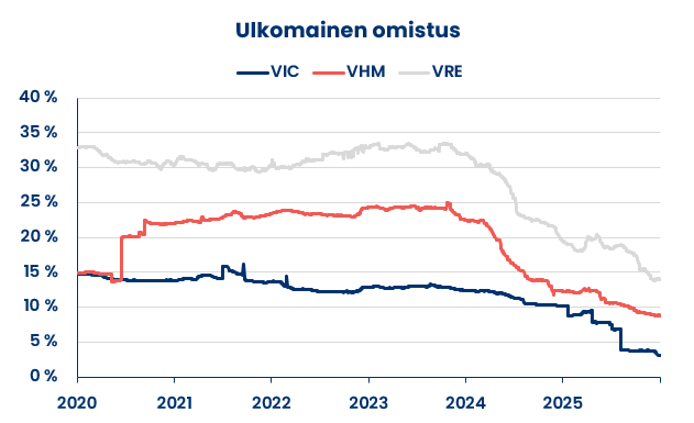 Ammattimaiset ulkomaiset sijoittajat ovat jo usean vuoden ajan vähentäneet sijoituksiaan VIN Groupin osakkeisiin. Esimerkiksi konsernin pääosakkeen VIC:n ulkomaalaisomistus laski vuoden 2025 aikana 10 % tasolta vain 3 % tasolle.